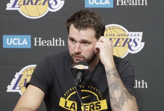 北京时间3月28日,NBA常规赛湖人主场116-99战胜篮网。赛后,湖人队球员东契奇接受了媒体的采访。